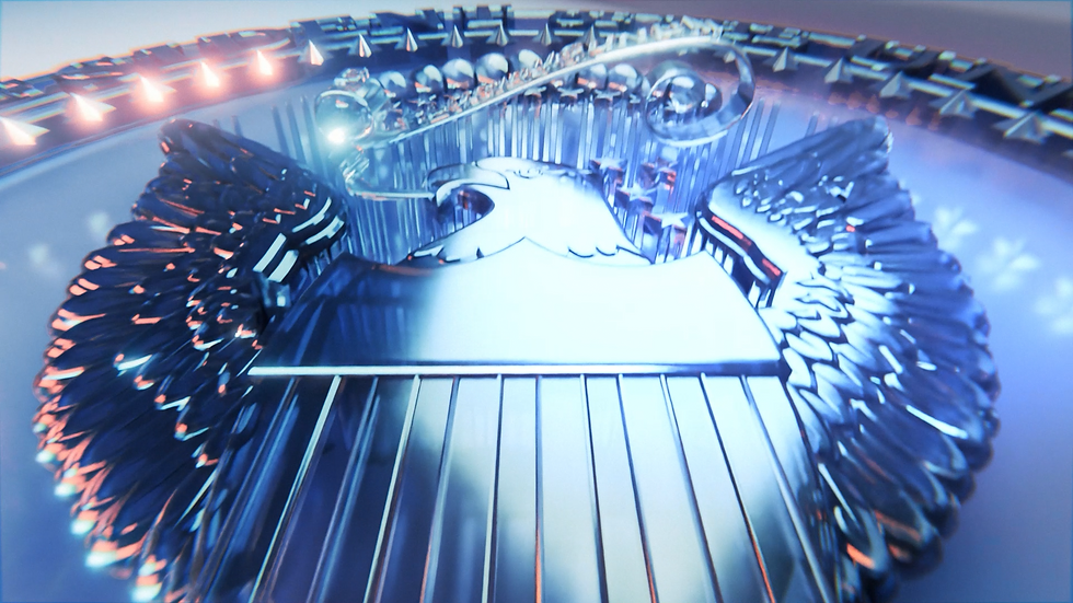 For the State of the Union special, the presidential seal was reimagined in 3D with a sleek, glass-like appearance, creating a modern and sophisticated look. Sharp angles and intricate details enhance its depth and prestige, giving the broadcast a bold and cinematic visual identity.